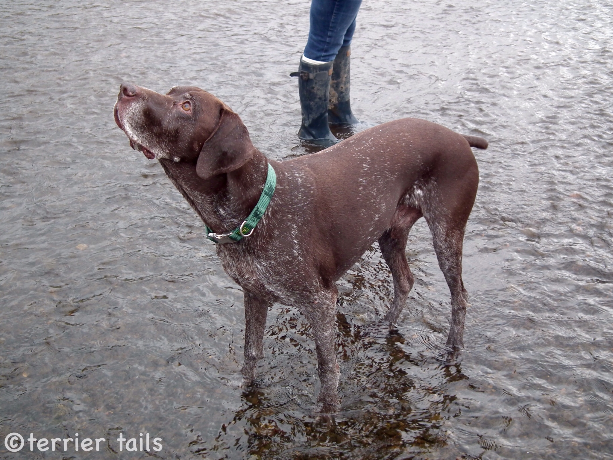 I got 2nd in Best Bitch, I also went in the Waggiest Tail, but as it was raining, cold an horrible I was a bit reluctant to keep wagging my tail, I got 5th place:(